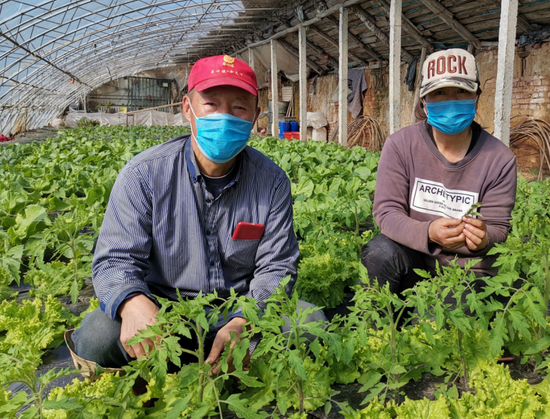 據(jù)農(nóng)產(chǎn)品配送了解北大荒股份八五六分公司種植戶趙健北家的8畝溫室棚內(nèi)綠意盎然,西紅柿、生菜、苦菊、黃瓜等蔬菜即將錯峰上市,預(yù)計效益達3萬余元。(劉思琪 張銀波 攝)